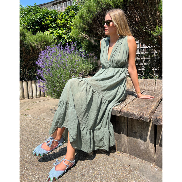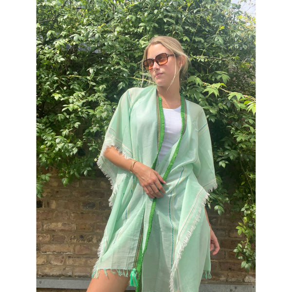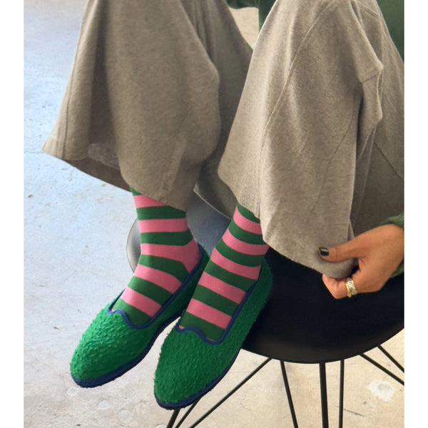 *NEW* Breton Cashmere Loose Rib Wrist Warmers Green & Off White