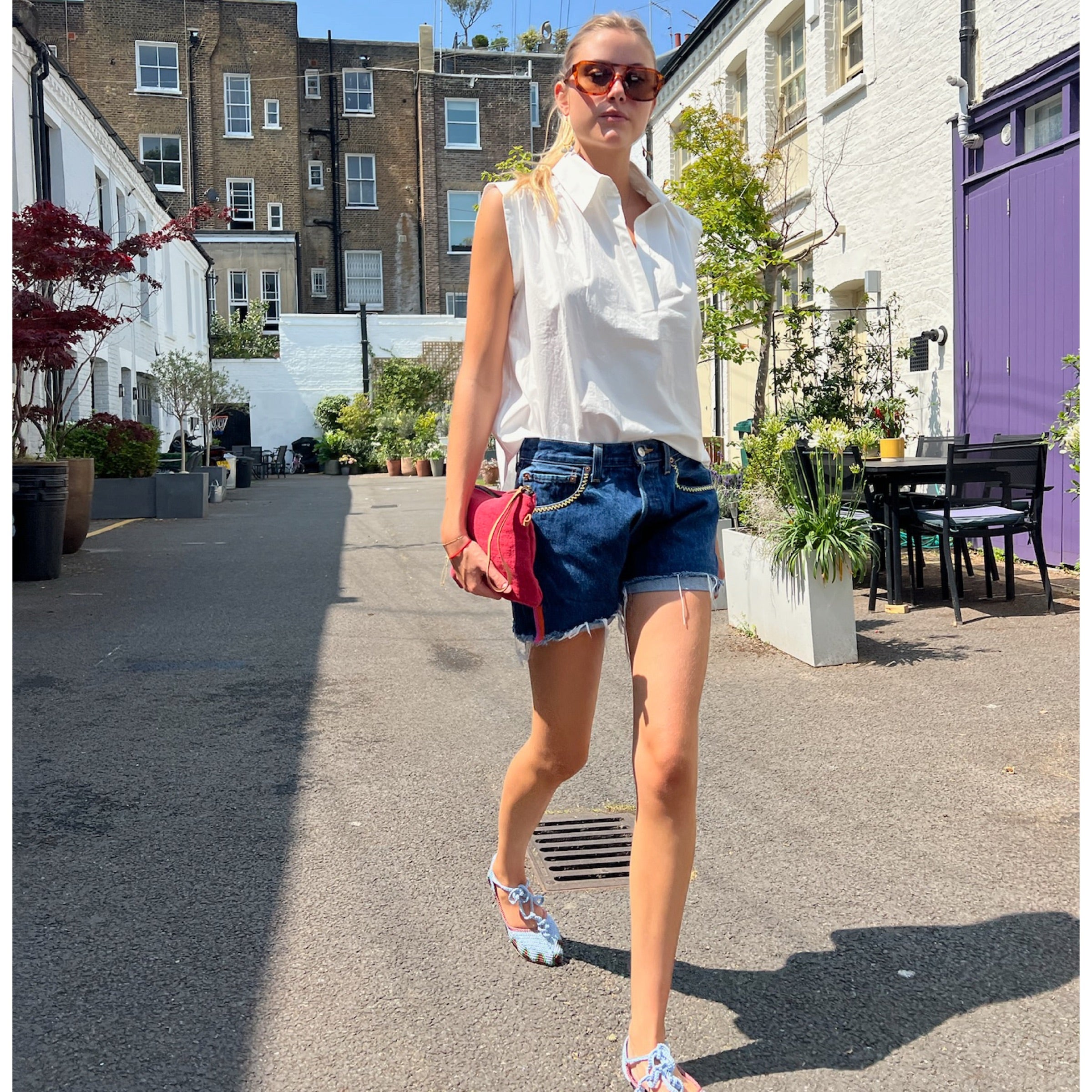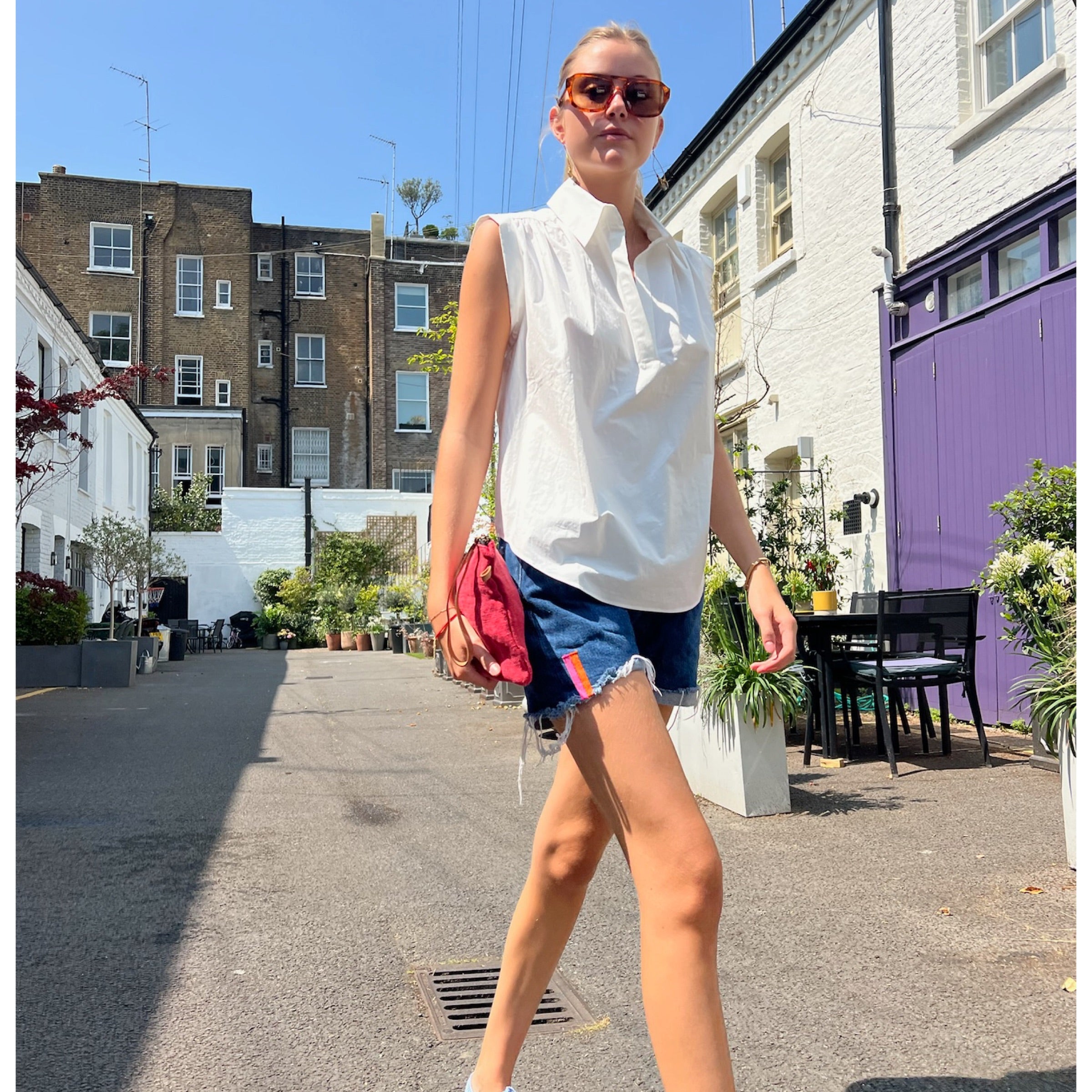 An updated version of the classic white cotton Liv short sleeved shirt, the SS25 version is created in crisp parachute cotton. It features a deep V-neckline, flattering cap sleeves and pulls over the head. A light, relaxed addition to your summer wardrobe.
