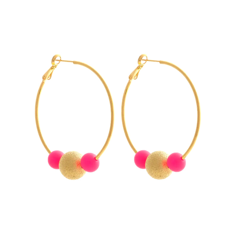 Half Beaded Cirque Hoops Pink/Red