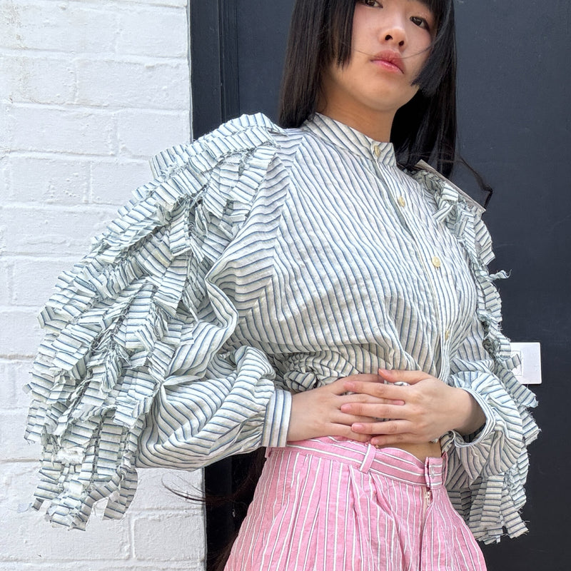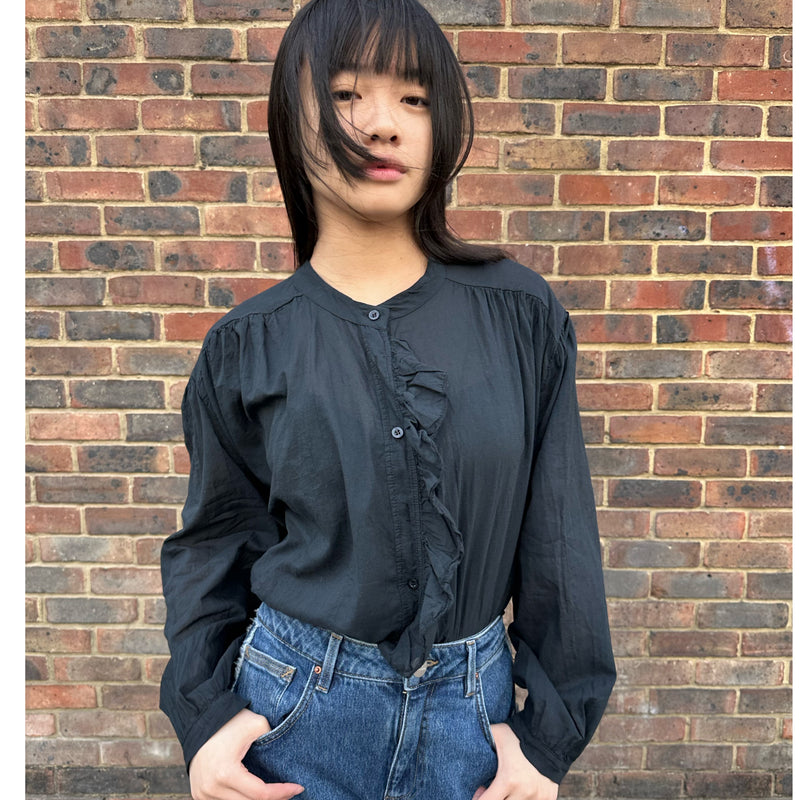 Johanna Lightweight Cotton Ruffle Shirt Black