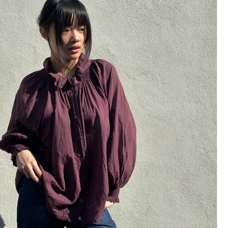 *NEW STYLE* Johanna Smocked Shirt Aubergine