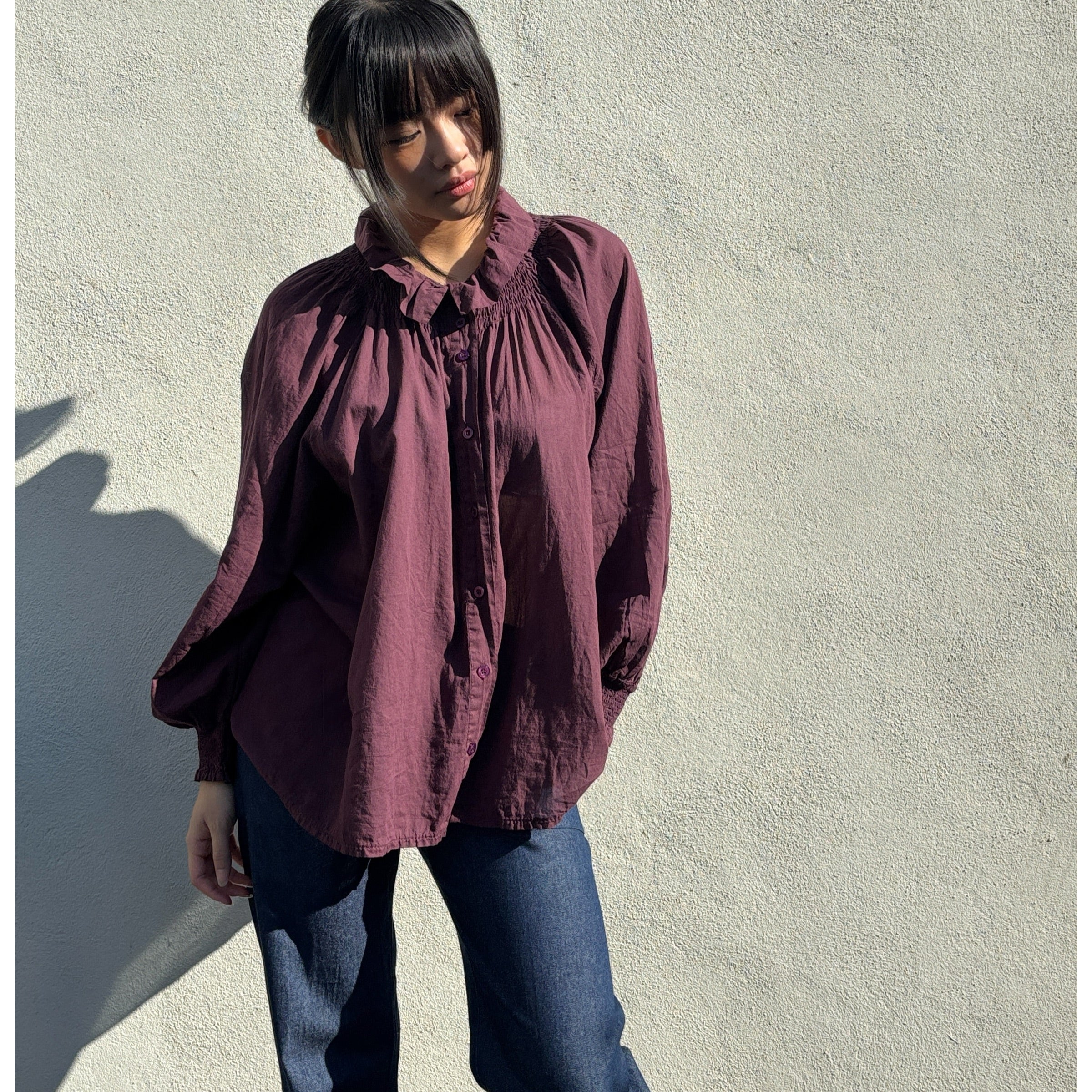 *NEW STYLE* Johanna Smocked Shirt Aubergine