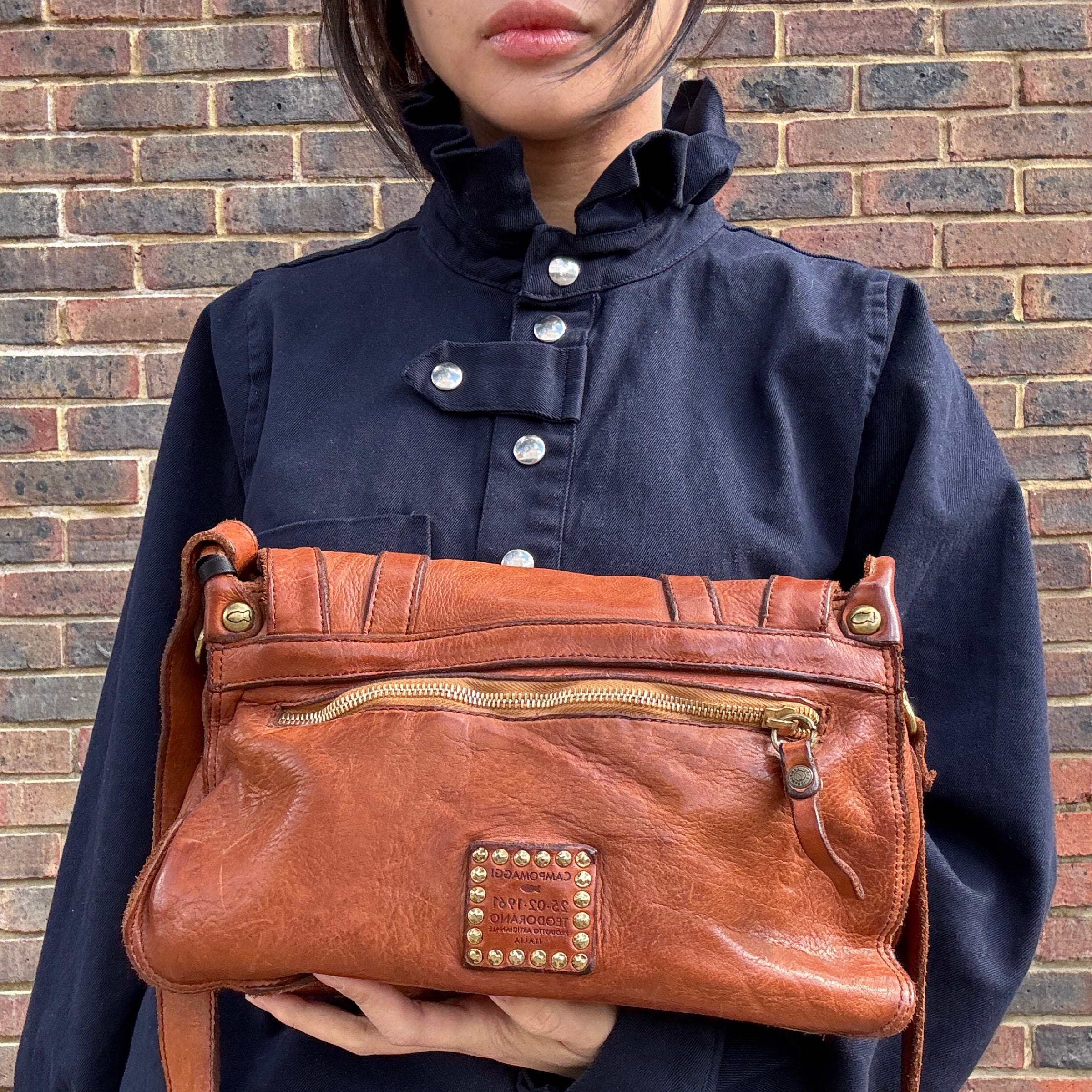 Saddle bag styling at its best, we just adore this stunning leather bag by Campomaggi crafted in richly-coloured leather and featuring an asymmetric flap.
