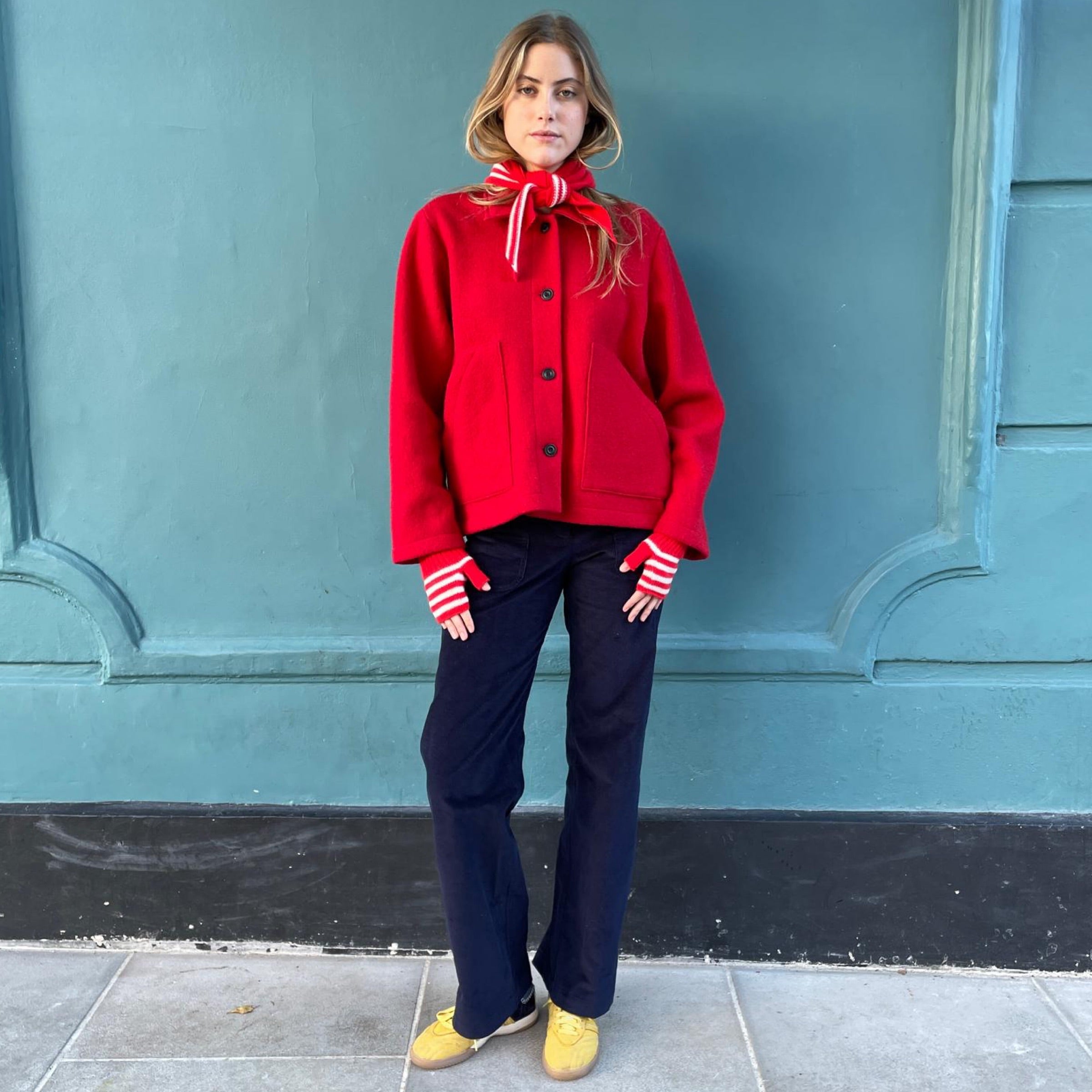 Wonderfully warm, this jacket silhouette is a classic workwear style - simply tailored and easy to wear - it features a 4 button centre front closure, patch pockets to the left and right hem, long sleeves and a collar. It is unlined.