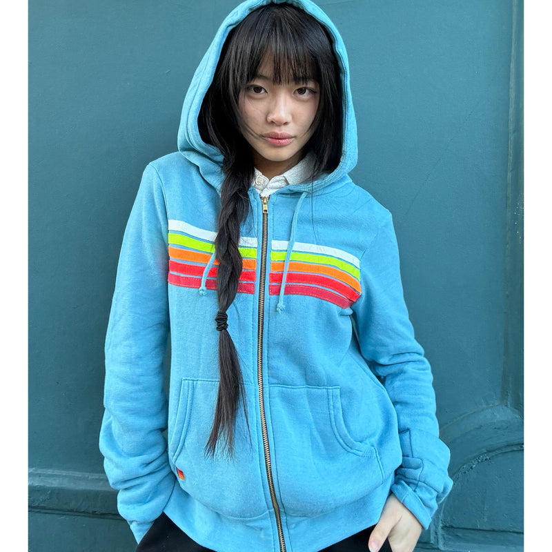 *NEW COLOUR* 5 Stripe Zip Hoodie Aquamarine