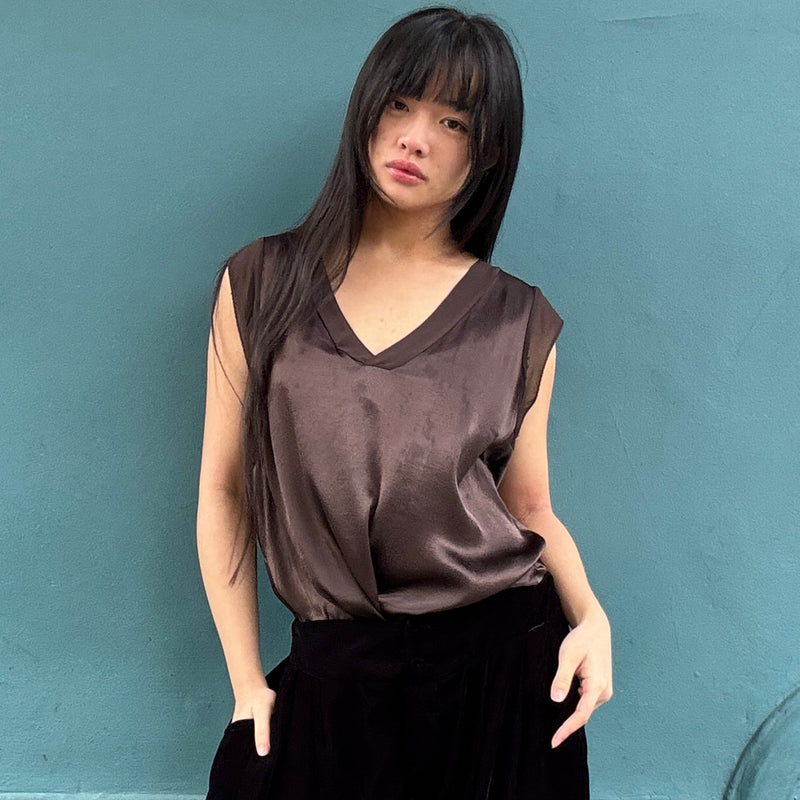 *NEW* Johanna V Neck Shell Top Chocolate