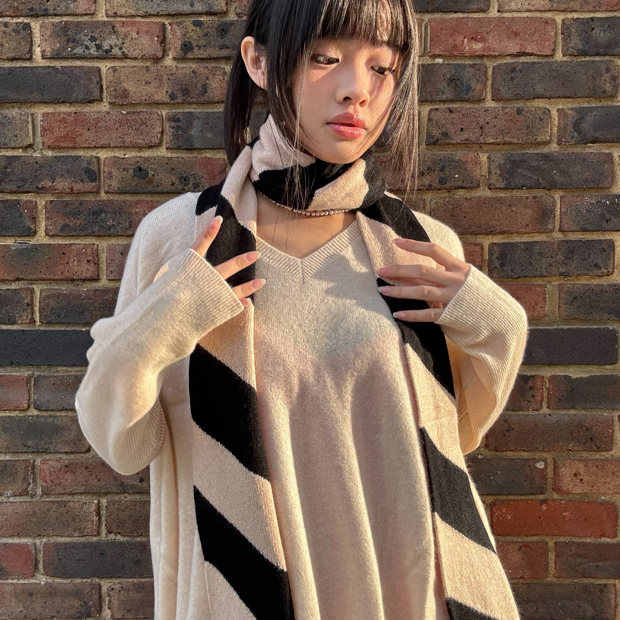 NEW Long Skinny Diagonal Stripe Cashmere Scarf. Ditch heavy knit scarves in favour of this super sassy skinny number - the perfect weight and width to wear day-long and a welcome touch of colour to your autumn outfit.