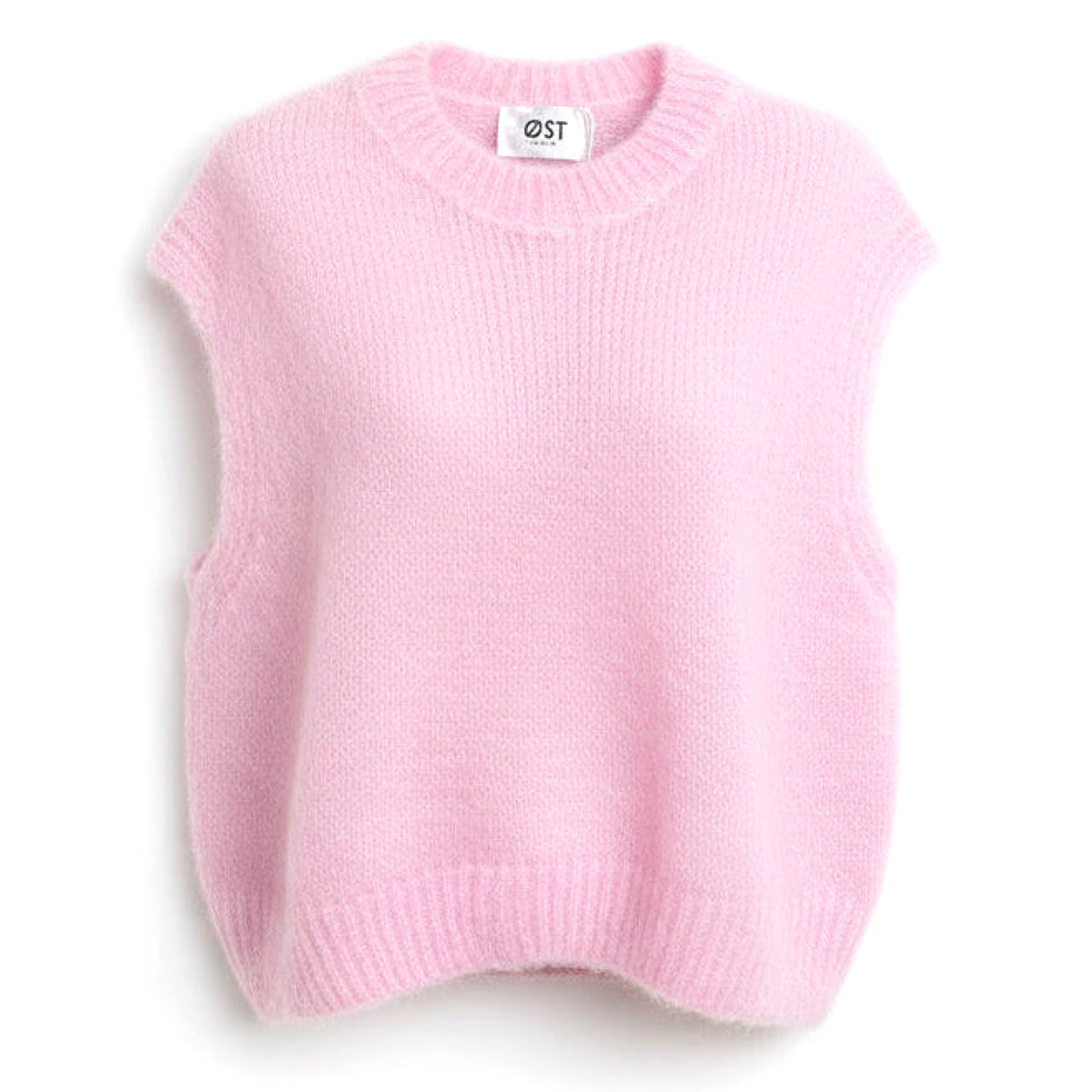 The crew neck vest is made from soft, lightweight mohair-rich yarn, and will layer over everything for an instant, modern update.