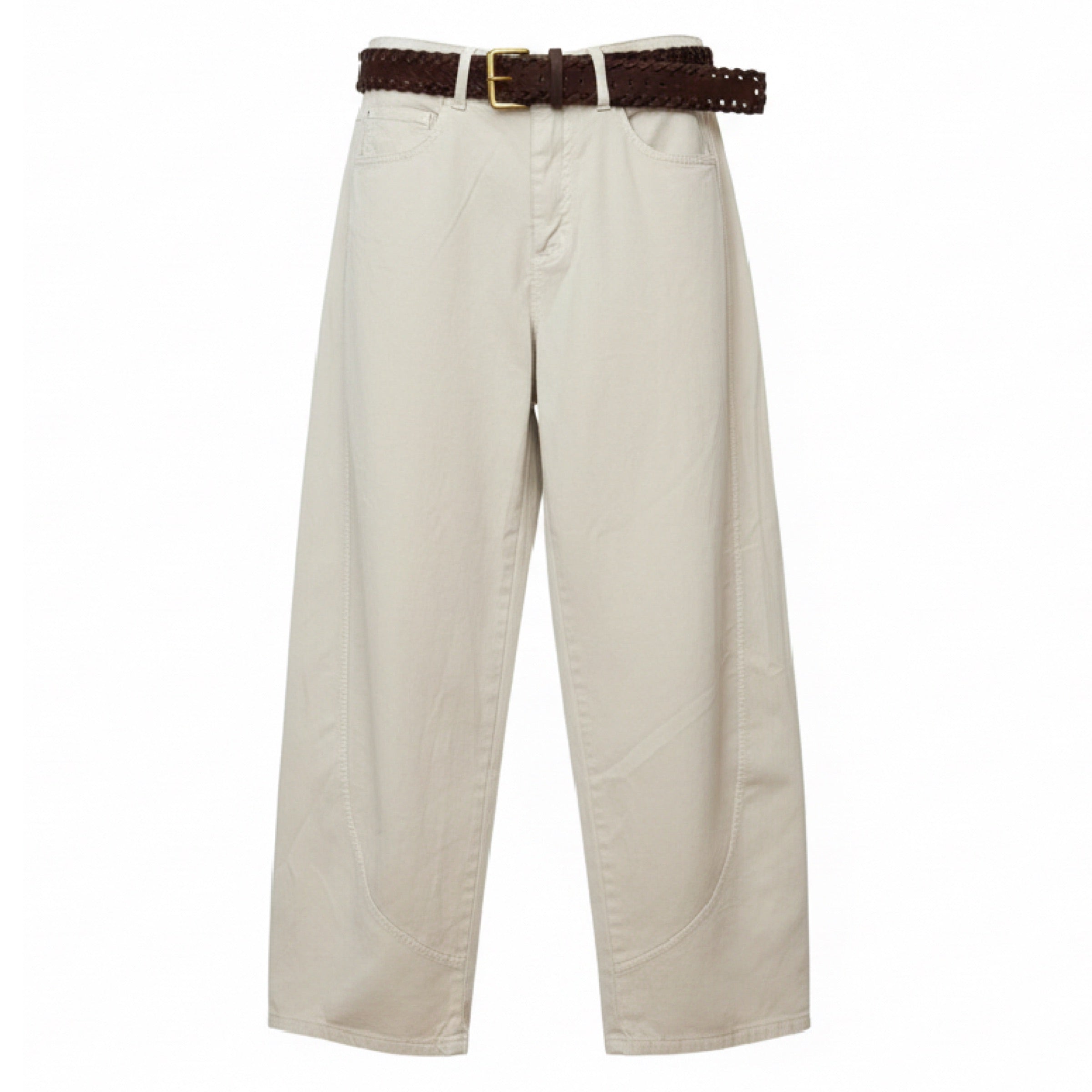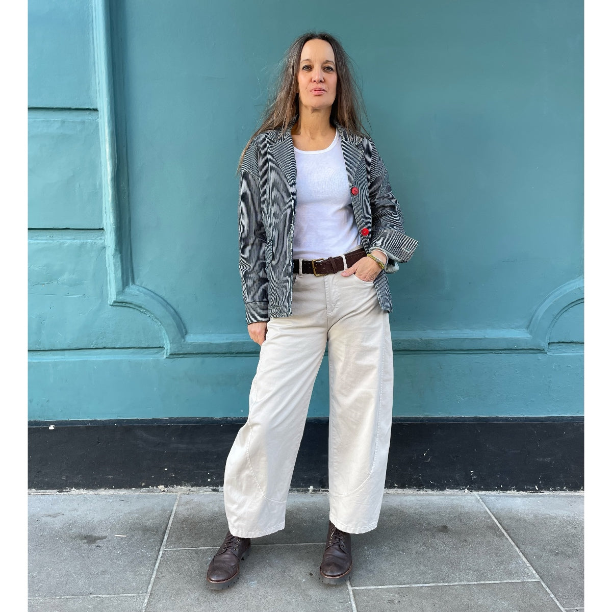 An essential wardrobe building block for the forthcoming season. Crafted into a well-cut barrel shape, these cotton trousers feature a flattering side seam that traverses the leg towards the hem creating a unique look. They come complete with a plaited belt that can be removed or replaced with your own. Also available in blue.