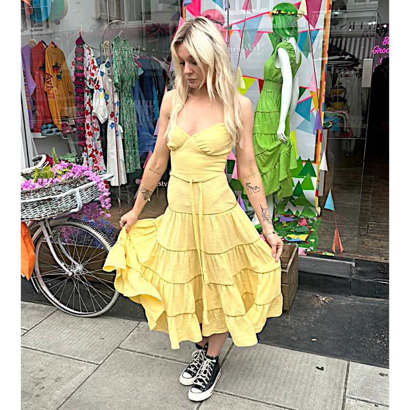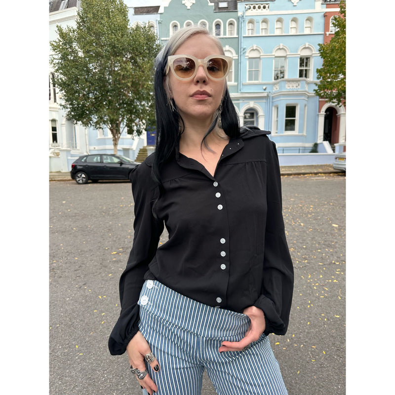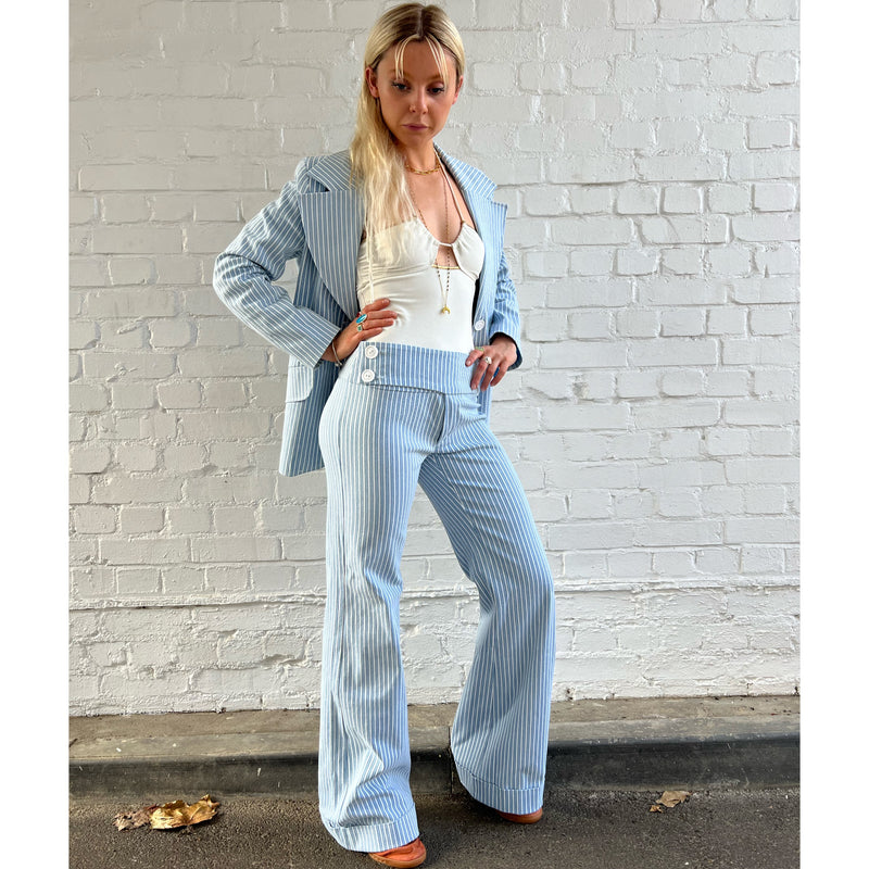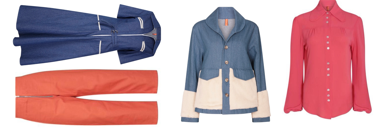 Our eponymous collection continues to nod to Seventies styling with long leg pants, ballooning sleeves, retro-look dresses and playful trim and stitch details.