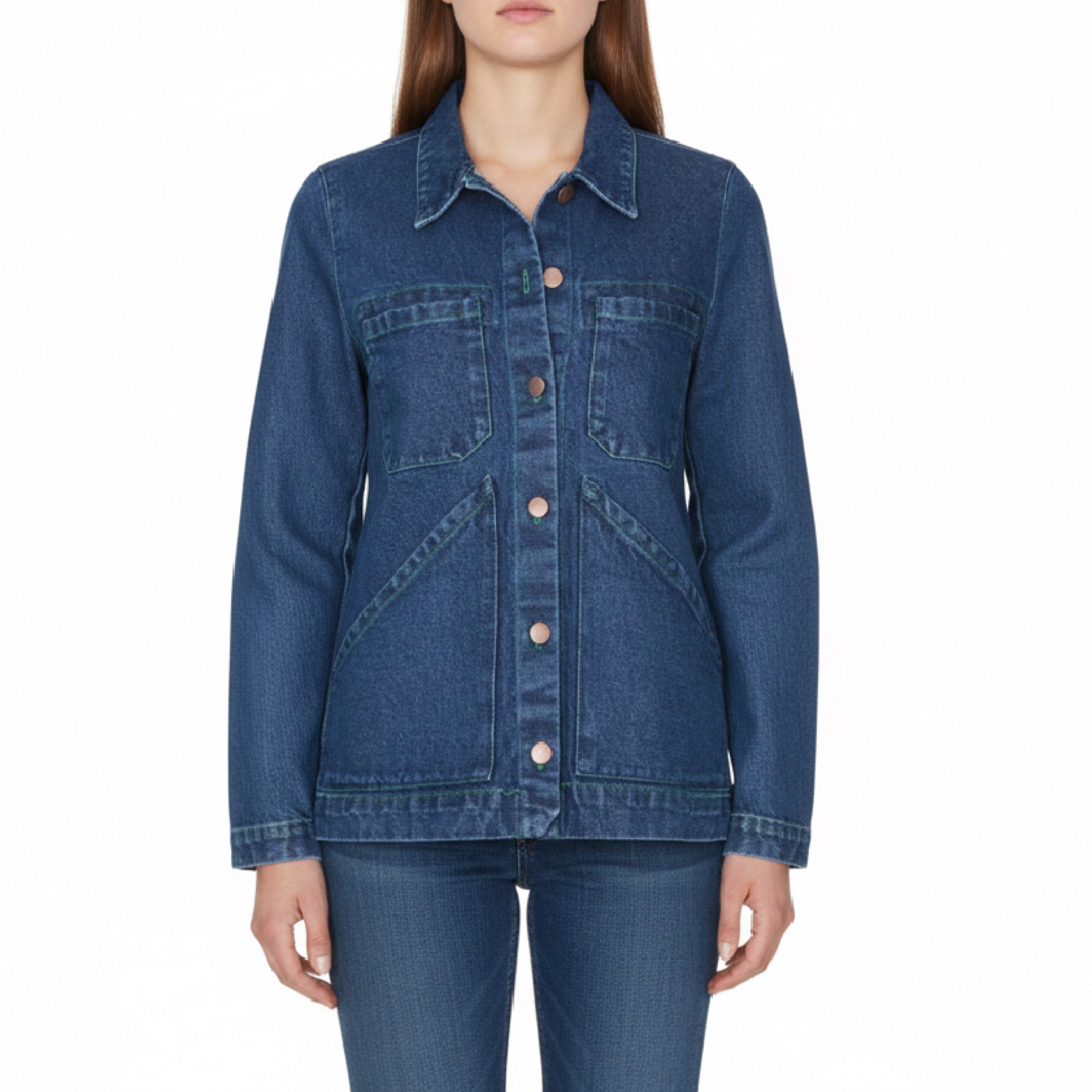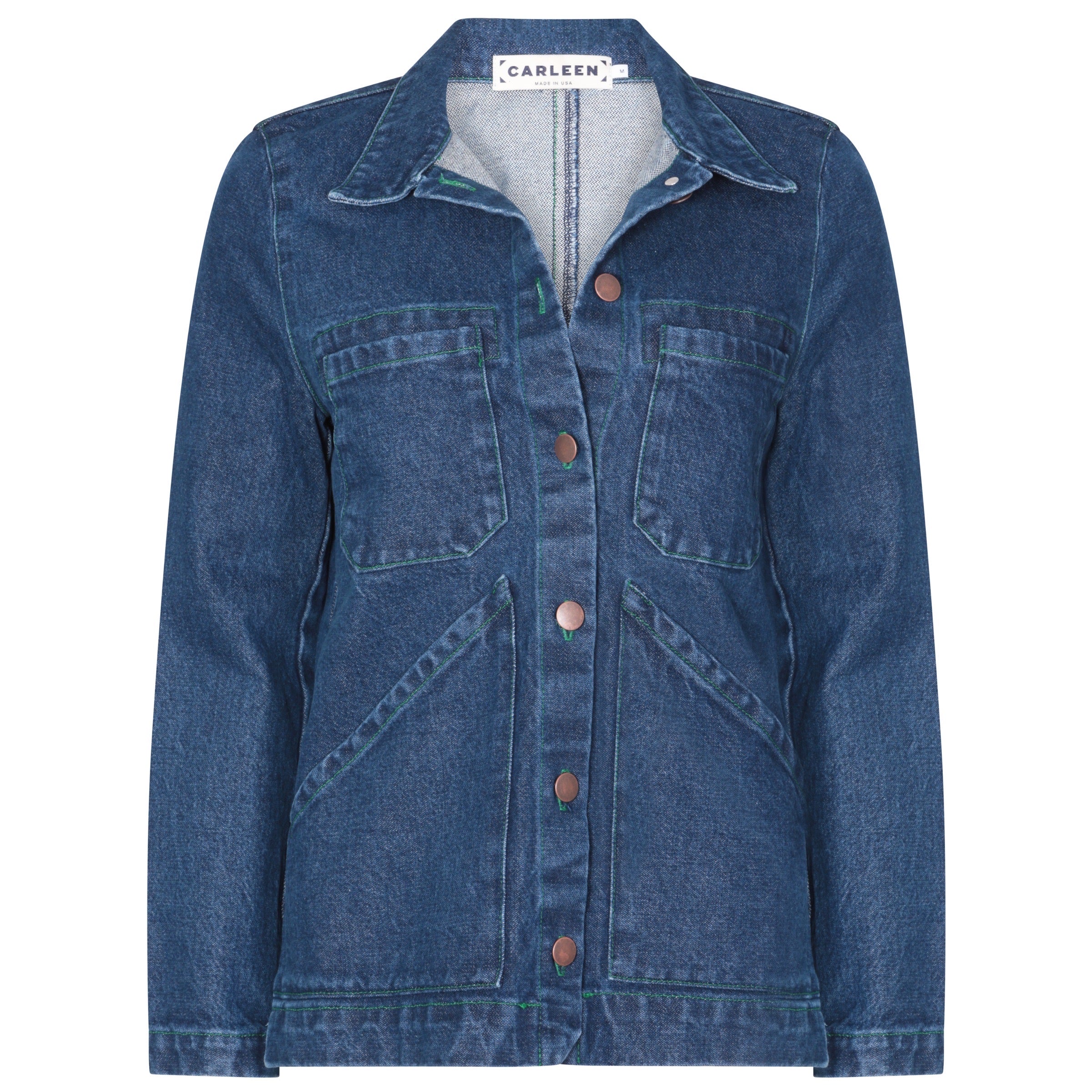 This beautifully crafted denim jacket by Carleen features a series of design features that make an otherwise ubiquitous item utterly unique. These include a slim sleeve and shoulder, a long back vent for east of movement and, of course, the triangle-shaped front pockets that wrap past the side seam. Created in 100% cotton item, this piece is built to last.
