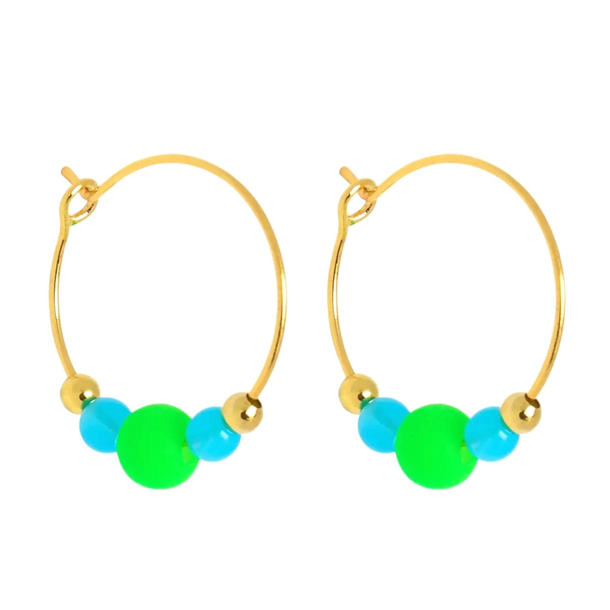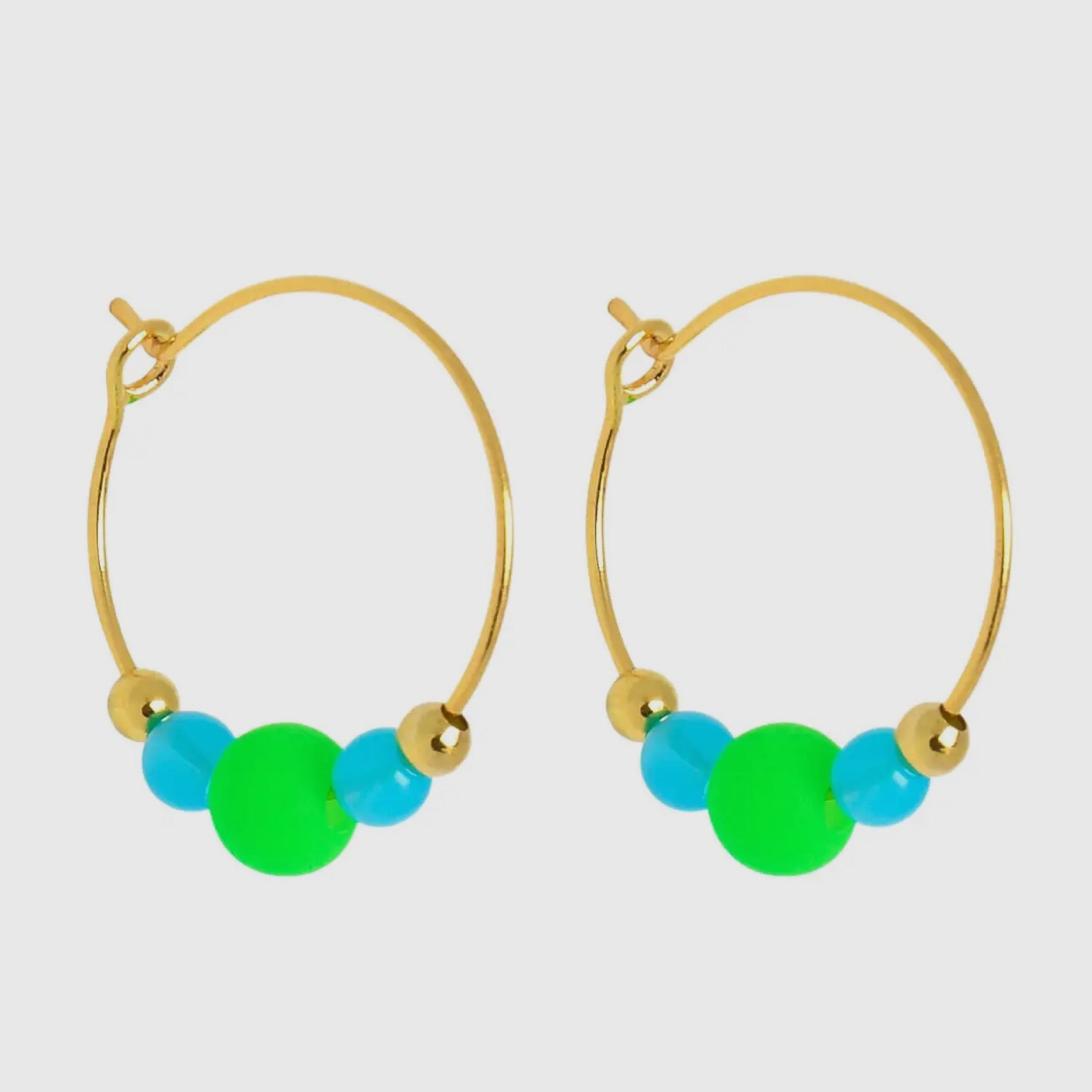 These summery little colour pop hoops are the perfect gift or treat for yourself to brighten up every day. Super lightweight, the drop length. is approximately 3.5cm. They are gold-plated brass hook/nickel free. Made in the UK.