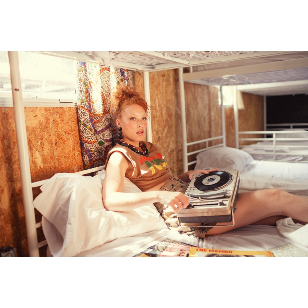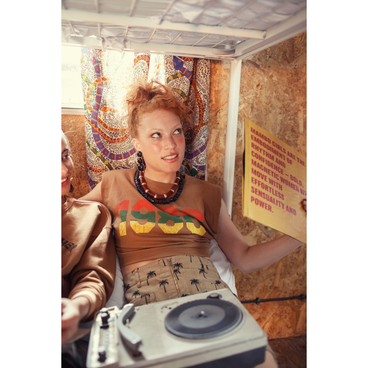 Sleeveless top with ribbed round neck collar, padded shoulders and "1980" printed on the front.