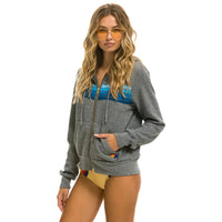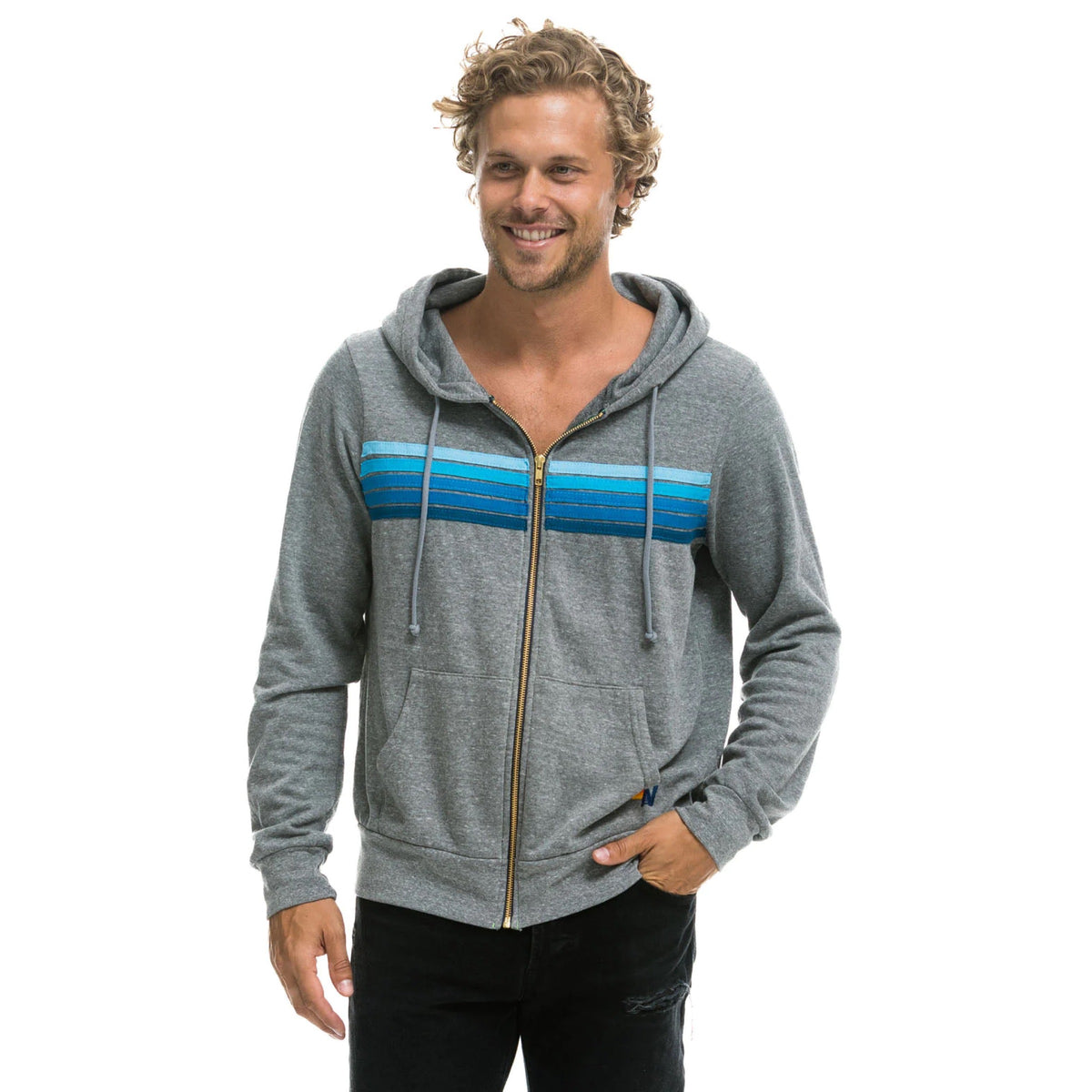 *RESTOCKED* Aviator Nation 5 Stripe Zip Hoodie Heather Grey/Blue